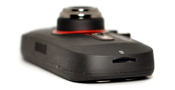 С фронта находится самая примечательная деталь корпуса – сверкающая ярко-красная вставка. Все же регистраторы нужны в том числе для привлечения внимания инспекторов ГИБДД и водителей других машин – словом, лиц, направляющихся к вам для беседы. И наличие регистратора нередко способно изначально направить общение в конструктивное, сдержанно-официальное русло. В остальном особыми изысками внешности модель не блещет – обычный для регистраторов аккуратный дизайн со скруглениями на углах.