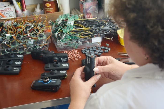 Сразу отметим, что AdvoCam действительно выпускает регистраторы только среднего и высокого ценового уровня. И совсем не предлагает сверхбюджетных решений, доля которых в объеме продаж других марок из ТОП-10 превышает 50%. Наши соотечественники не опускаются до выпуска откровенно дешевых устройств, которые способны привлечь потребителя только одним – ценой. AdvoCam, так же как и крупнейшие мировые производители электроники, использует OEM-подход. То есть физически устройства собираются азиатскими партнерами в Китае. Но там происходит только финальная сборка крупных партий регистраторов. Причем, сборка производится по схемам и под строгим надзором российских специалистов. Сами устройства разрабатываются здесь, на заводе в Александрове. Точнее, в центре разработок при заводе.