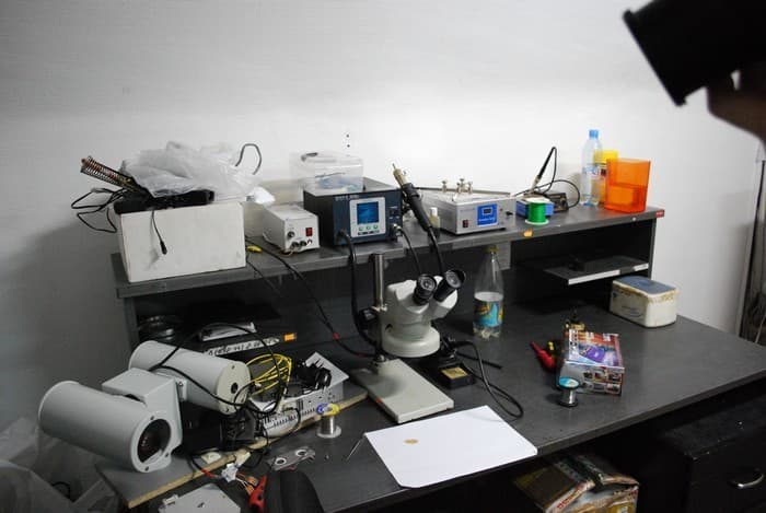 На столе инженера лежит схема американского процессора Ambarella: в данный момент проводятся замеры параметров одной из будущих моделей AdvoCam. Конечно, рабочий беспорядок наблюдается далеко не везде – в зависимости от специфики сотрудника, ему может хватать и компьютера для расчетов и моделирования.