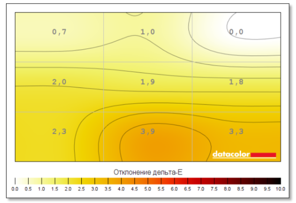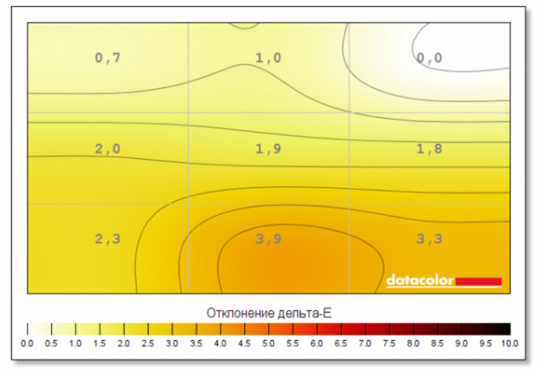 С отклонением цвета ситуация несколько хуже – до 3.9, что больше, чем желаемые 3 (а для работы с контентом и того меньше хотелось бы).