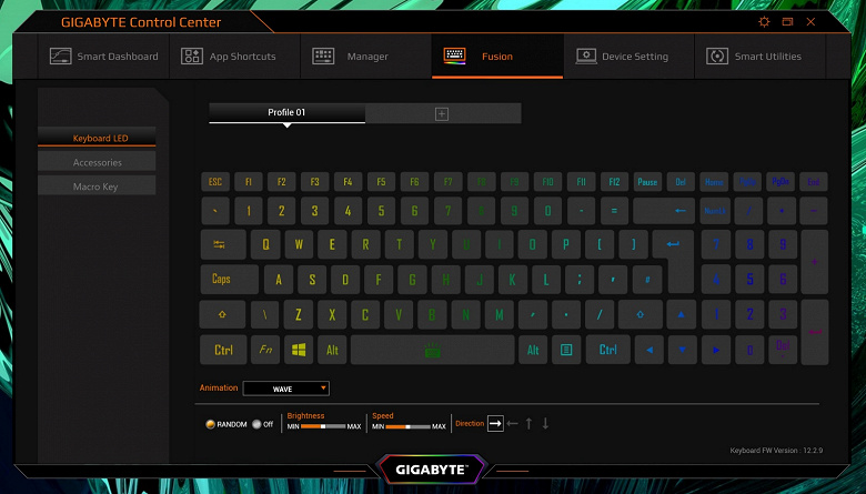 Раздел Fusion открывает доступ ко всем настраиваемым параметрам клавиатуры. Предусмотрена возможность настройки не только подсветки группы клавиш или каждой клавиши по отдельности, но и их функциональности.