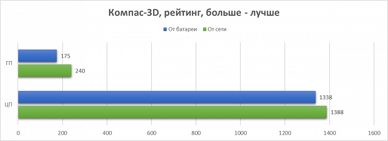 Теперь пробежимся по нескольким бенчмаркам профессионального ПО. Тестирование проведём также в двух режимах – при подключении к сети и от встроенного аккумулятора. Во всех случаях – чем выше результаты, тем выше рейтинг ноутбука.
