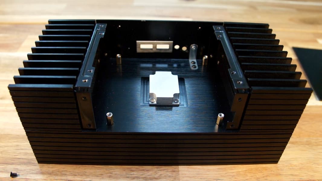 Безвентиляторные корпуса Akasa выполнены из анодированного алюминия, весят немало и имеют ребристую поверхность, что позволяет им выполнять роль гигантского радиатора. Поэтому даже мощные процессоры Core i7 от Intel NUC могут охлаждаться в них с большой эффективностью. Само собой, пользователь получает и другие преимущества пассивного охлаждения: меньше пыли на компонентах и абсолютное отсутствие шума. Кстати, бесшумная работа - одна из причин, по которой часто переустанавливают платы NUC из оригинального в безвентиляторный корпус, попутно демонтируя «родной» кулер.