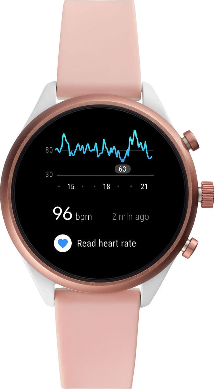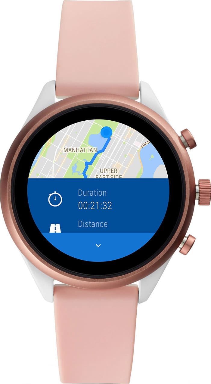Второе преимущество часов заключается в их способности синхронизироваться со смартфонами на базе обеих самых популярных OC. То есть, если вы пользуетесь «айфоном», подключить к нему Fossil Sport не составит никаких проблем. Яркий 1,2-дюймовый AMOLED-дисплей с высокой контрастностью обладает плотностью точек 390 ppi, а насыщенные цвета различаются даже на прямом солнечном свету. При этом циферблаты можно менять: их, предустановленных, имеется как минимум десяток, и при необходимости данные на них можно компоновать под свои нужды. В листе имеются в том числе варианты с интегрированным Google Fit – отличное решение для тех, кто мониторит свои физические нагрузки в течение дня.
