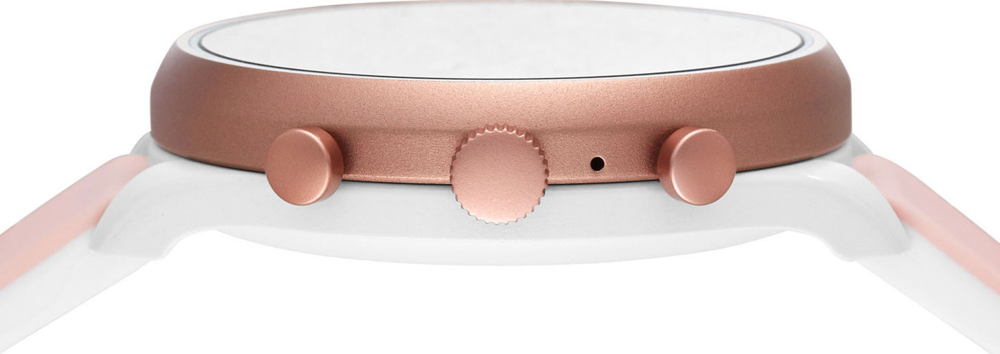А наиболее интересное скрывается, разумеется, внутри. Дело в том, что Fossil Group одной из первых решила ставить в свои изделия процессор Snapdragon Wear 3100, в то время как многие производители, выпускающие аналогичный продукт на базе Wear OS, все еще пользуются чипсетом предыдущего поколения. В Snapdragon Wear 3100 3100 нет чего-то революционного, тем не менее он гораздо более производителен, что сказывается на качестве навигации и управления функциями: все работает быстро, четко, без задержек. Объем встроенной памяти 4 ГБ, и этого вполне достаточно. Его хватит, чтобы хранить на гаджете медиафайлы и прослушивать музыку, исключив из этой цепочки телефон, после подключения наушников по Bluetooth.