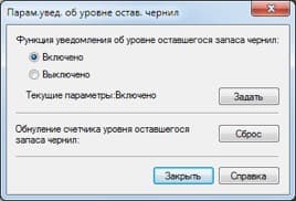 Но, конечно же, остаток чернил отслеживается — хотя бы минимальный уровень, причем уведомление о его достижении можно включить или отключить. Естественно, дожидаться соответствующего сообщения, чтобы приступить к дозаправке, вовсе не обязательно, пополнить содержимое бункеров можно в любое время, но при включенном уведомлении об уровне оставшегося запаса следует выполнить действия, предусмотренные инструкцией: обнулить счетчик.