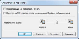 Наконец, в «Специальных параметрах» можно, помимо прочего, задать задержку на высыхание чернил — для нее есть пять условных градаций.