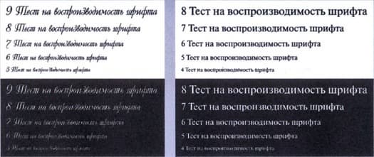 Шрифты с засечками и без читаются от 4 кегля, но если печать ведется вывороткой, то 4-й кегль читаемым назвать можно лишь с натяжкой. С декоративными шрифтами дело обстоит хуже: нормальные читаются от 5 кегля, выворотка от 7-го.