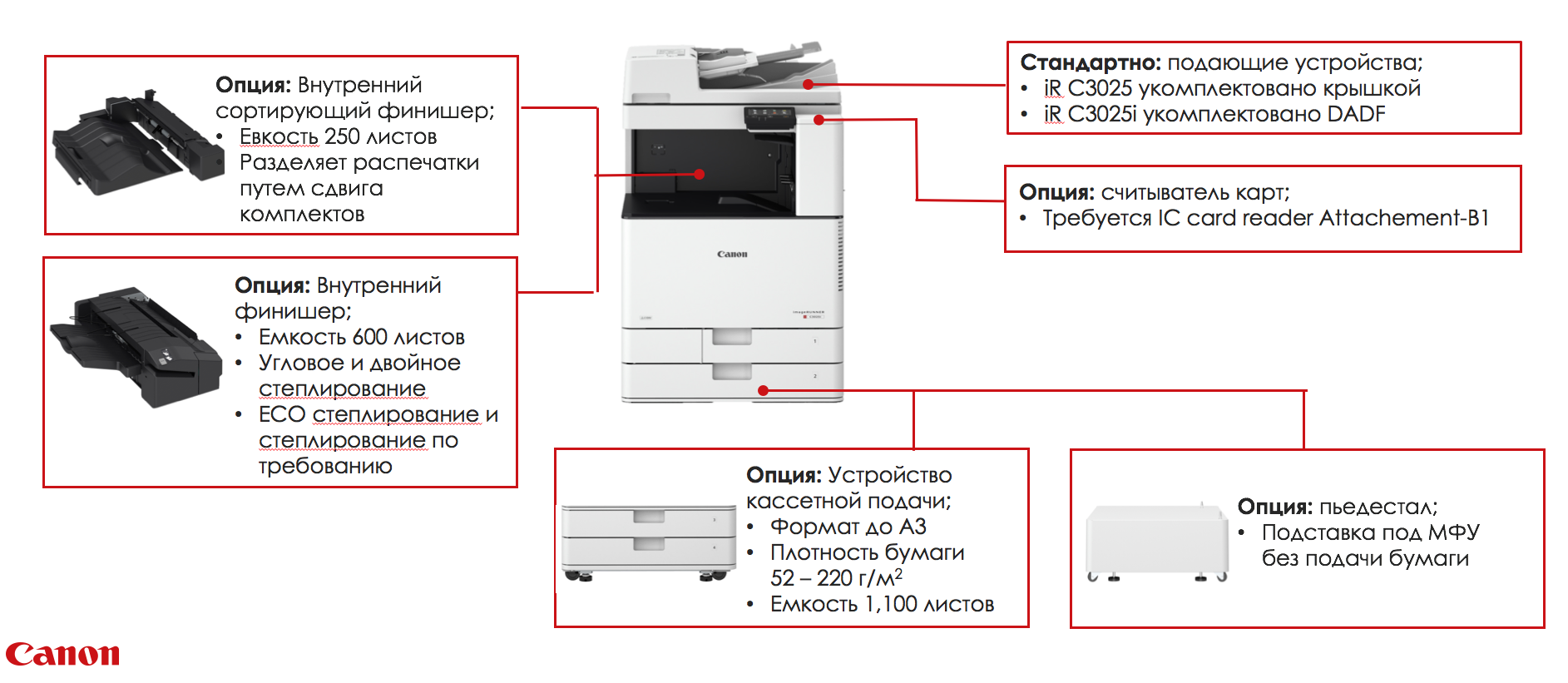 Модельный ряд содержит два устройства для полноценной офисной работы, далее представлены основные характеристики imageRUNNER C3025 и imageRUNNER C3025i: