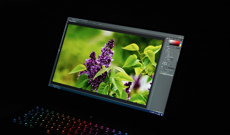 Стоит учитывать, что видимая область начинается не сразу от корпуса, а чуть дальше, но всё равно рамки действительно можно назвать тонкими – заявлены 3 мм сверху и по бокам, а площадь дисплея относительно корпуса крышки составляет 89%. Дисплей каждого ноутбука калибруется производителем индивидуально, ни о каком процессе, поставленном на поток, когда один цветовой профиль применяется для всей партии изделий, в нашем случае не может быть и речи.