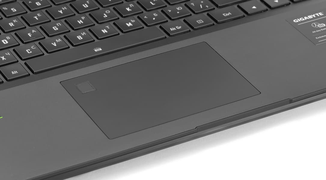 Сенсорная панель достаточно большая и в нее встроен сканер отпечатков пальцев. В явном виде левая и правая кнопки мыши визуально не наблюдаются, они скрыты под поверхностью сенсорной панели с противоположной от клавиатуры стороны.