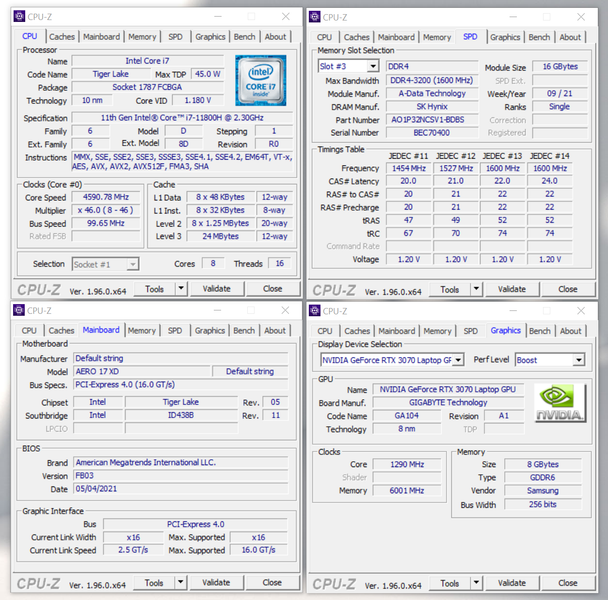 Графическая подсистема осталась прежней – это Laptop версии (Max-Q) графических процессоров GeForce RTX 30-й серии от NVIDIA. Для модели с суффиксом XD это RTX 3070 Laptop Max-Q с 8 ГБ видеопамяти, а для модели YD – только RTX 3070 Laptop Max-Q, но в двух вариантах - с 8 или 16 ГБ видеопамяти. Также для второй модели доступен не только i7-11800H, но и i9-11980HK, отличающийся увеличенными тактовыми частотами и наличие технологии Turbo Boost Max 3.0.