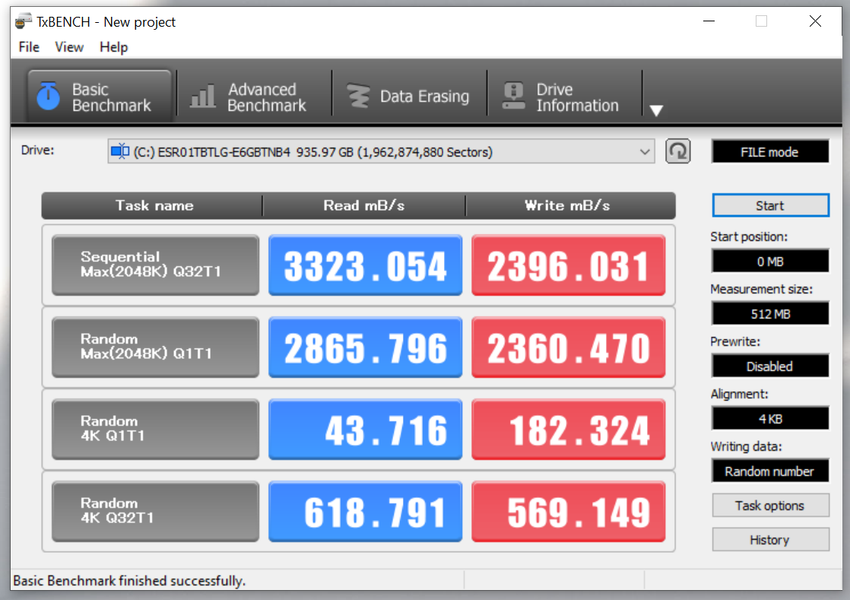 Установленный накопитель продемонстрировал вполне приличные скоростные показатели. Традиционно, работа с 4K блоками в один поток с минимальной глубиной очереди демонстрирует скромный результат.