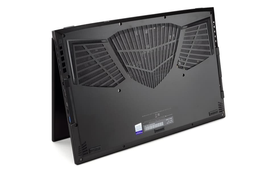 Забор холодного воздуха осуществляется только со стороны нижней части корпуса, где в достаточном количестве расположены закрытые металлической сеткой вентиляционные отверстия, сетка защищает изделие от попадания внутрь корпуса мелких посторонних предметов, ворса, шерсти домашних животных и т.д. Резиновые ножки не очень большие, поэтому ноутбук строго рекомендуется использовать на ровных поверхностях, чтобы не перекрывать доступ прохладных воздушных масс к элементам системы охлаждения.