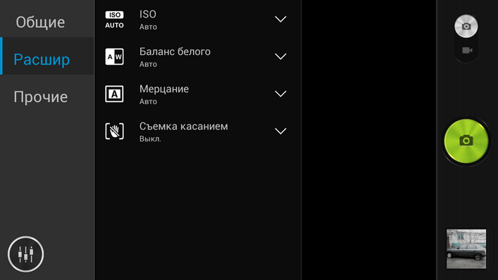 Подход к программным средствам съемки в смартфонах абсолютно разный. В Highscreen Boost 2 SE практически без изменений оставлено «стоковое» приложение Android, что не самым лучшим образом сказывается на удобстве доступа к настройкам. Если вызвать меню опций, возникает ряд из пяти пиктограмм, три из которых полностью одинаковые – приходится запоминать, в какой вкладке какие опции находятся.