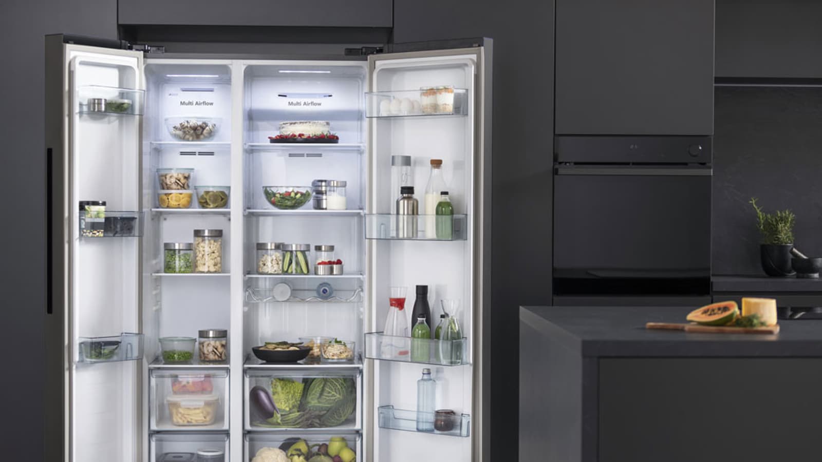 Некоторые характеристики техники сложно оценить, хорошенько не поразмыслив. Наличие в холодильнике более прохладных и менее прохладных полок – казалось бы, что может быть лучше? Но представьте себе будний день с кучей задач, когда в суете просто нет времени, чтобы вспомнить, где находится нужная зона. Так приятная опция может обернуться досадной помехой. Технология Multi Airflow поддерживает постоянную температуру во всей холодильной камере Hisense RS711N4AFE. Все углы внутреннего пространства одинаково охлаждаются циркулирующим воздухом через вентиляционные отверстия, и продукты остаются свежими, куда бы их ни положили.