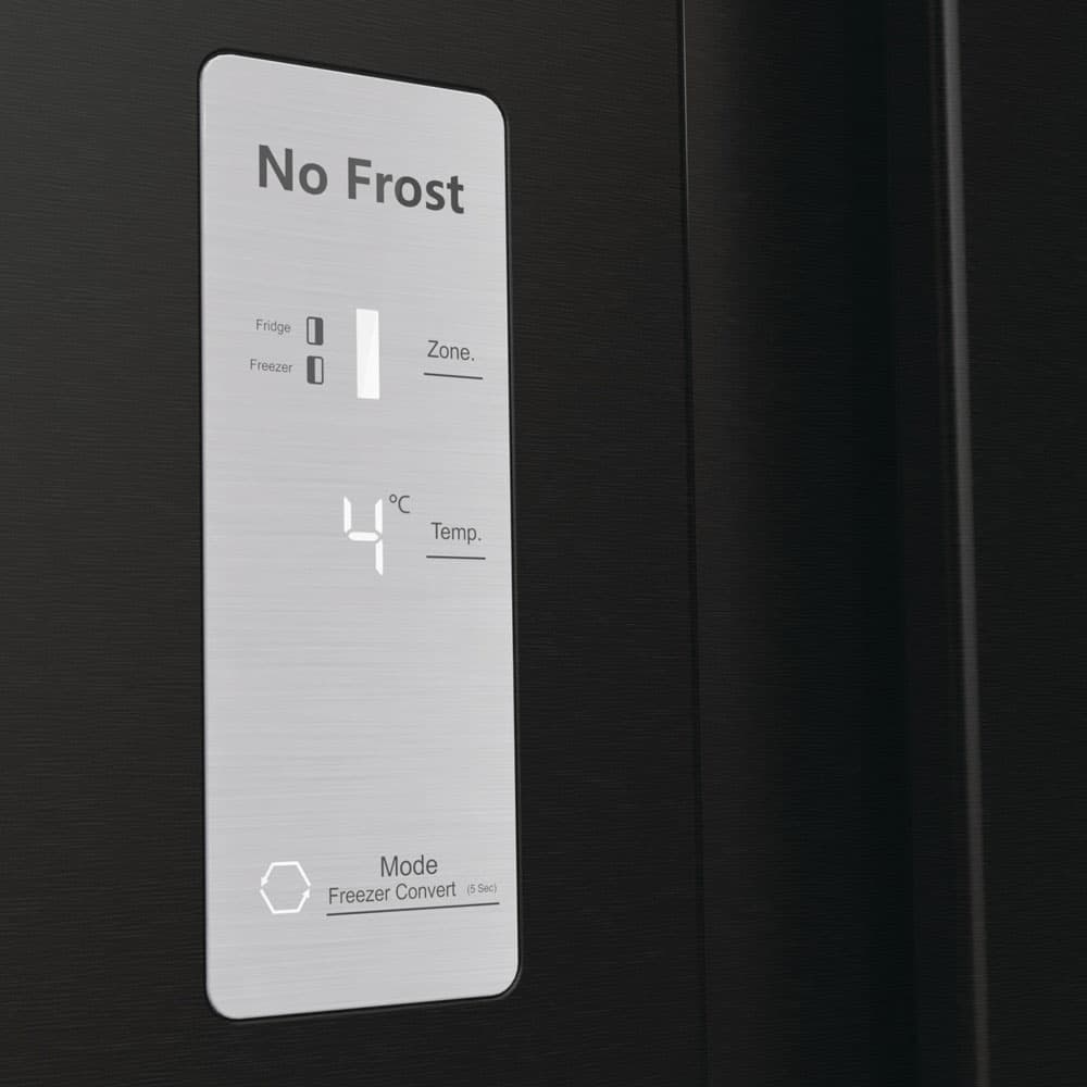 Электронное управление в холодильнике Hisense RS711N4AFE оградит от необходимости разбираться в сложностях устройства. Сенсорная панель, элегантно расположенная на дверце холодильника, позволяет интуитивно понятно и легко регулировать температуру и менять режимы.