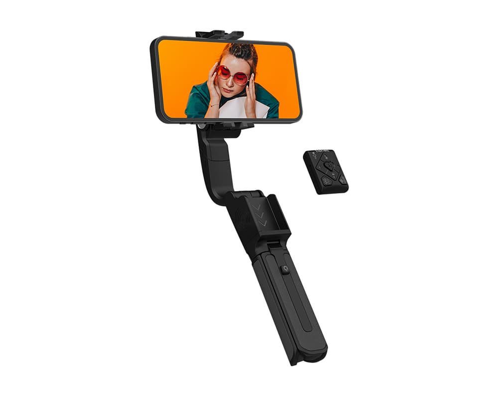 Продвинутый пульт дистанционного управления — ещё одна изюминка устройства. Он позволяет с расстояния снимать фото и видео, управлять направлением съемки камеры, переключаться между ландшафтным и портретным режимами и т. д. Что еще более важно, iSteady Q также может вращать подвес на на 360 градусов, это нужно при съёмке панорамного видео или в следящем режиме (когда камера поворачивается вслед за человеком в кадре, чтобы не упустить его из виду).