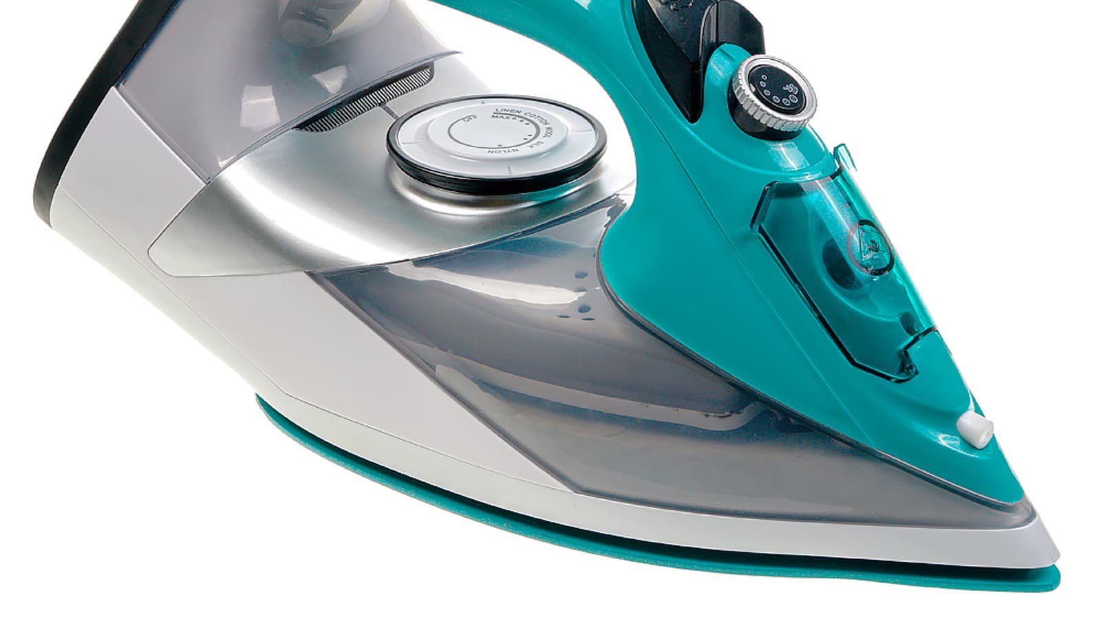 Форма и конструкция утюга Hottek HT-955-007 классическая: подошва, корпус с емкостью для воды, ручка. В оформлении использовано четыре цвета: бирюзовый, белый, светло-серый и серебристый. Несмотря на обилие цветов, утюг не выглядит вычурно или аляповато. Вес можно оценить как средний — прибор не тяжел, но и легким его назвать нельзя.