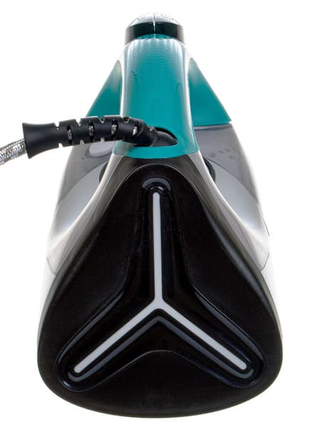 Ни форма, ни кажущаяся громоздкость не мешают утюгу успешно разглаживать вещи сложного кроя и труднодоступные места — зауженный носик для этого достаточно длинен.