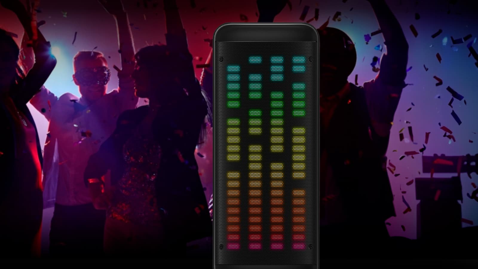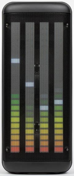 Краеугольным камнем дизайна колонки, безусловно, является подсветка. Форма корпуса навеяна профессиональной концертной акустикой.