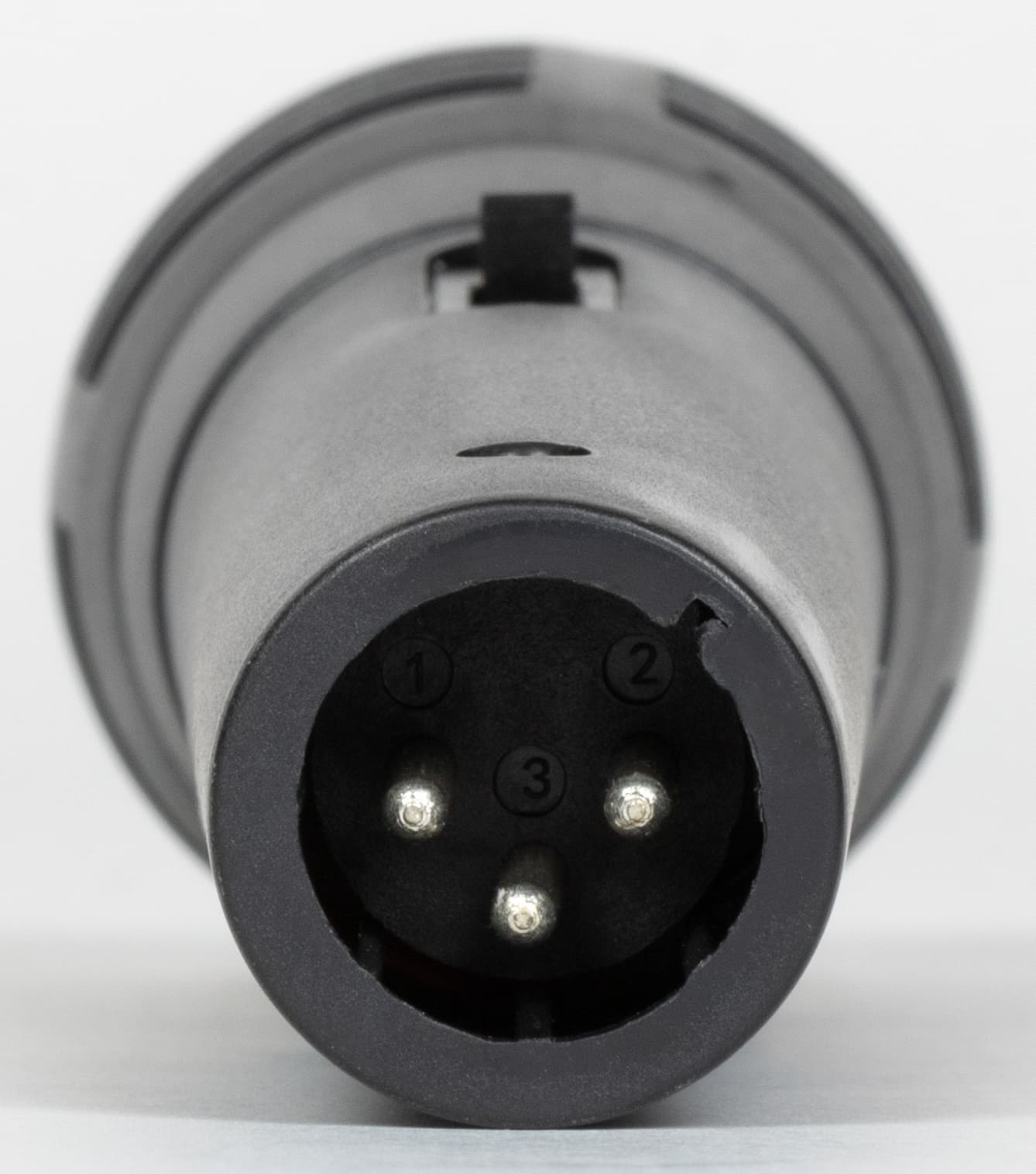 На нижнем торце расположен разъем XLR. Разъем универсальный и широко используемый, что позволяет при необходимости применять не только комплектный кабель, но и другие – с большей или меньшей длиной, например.