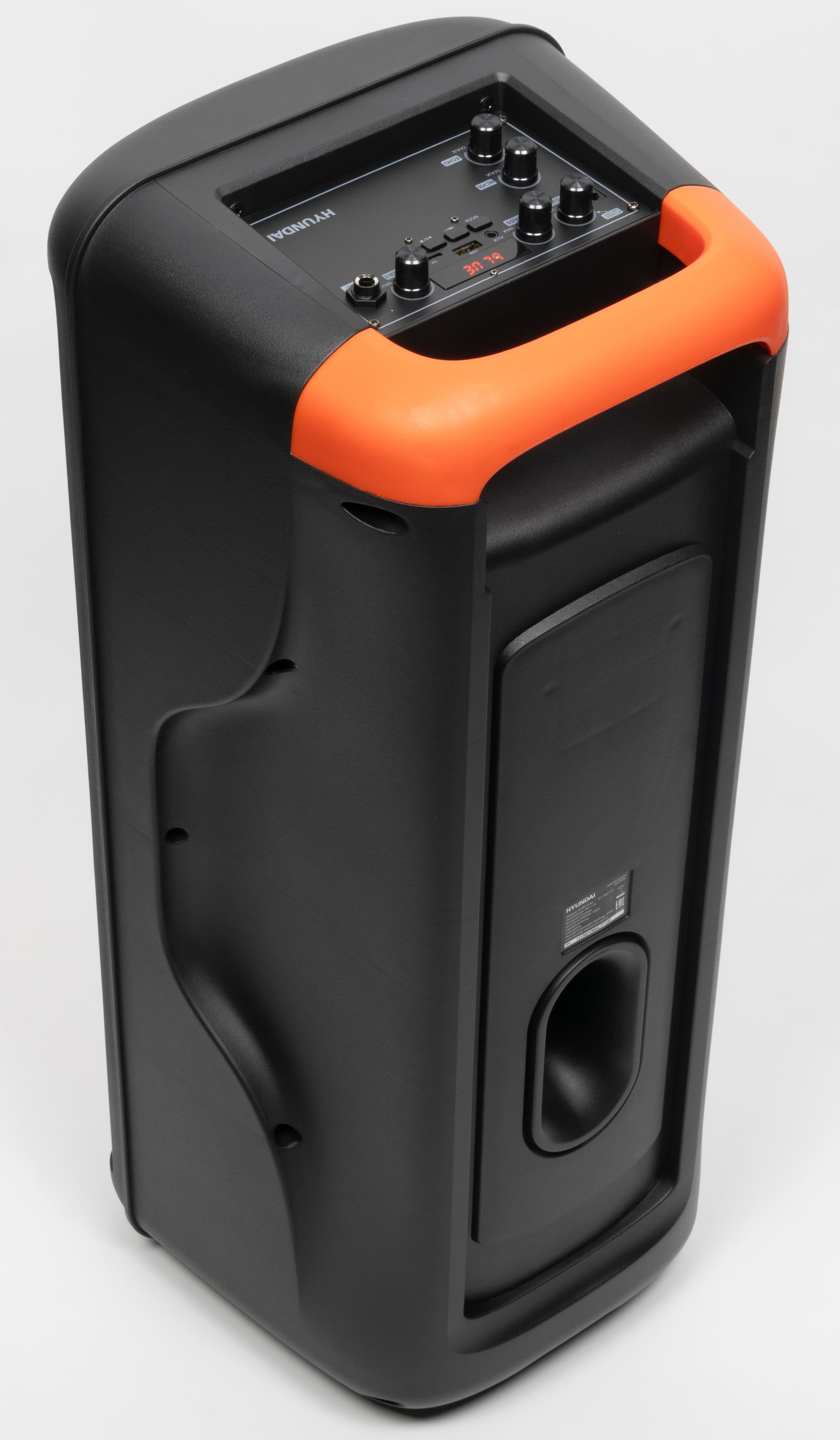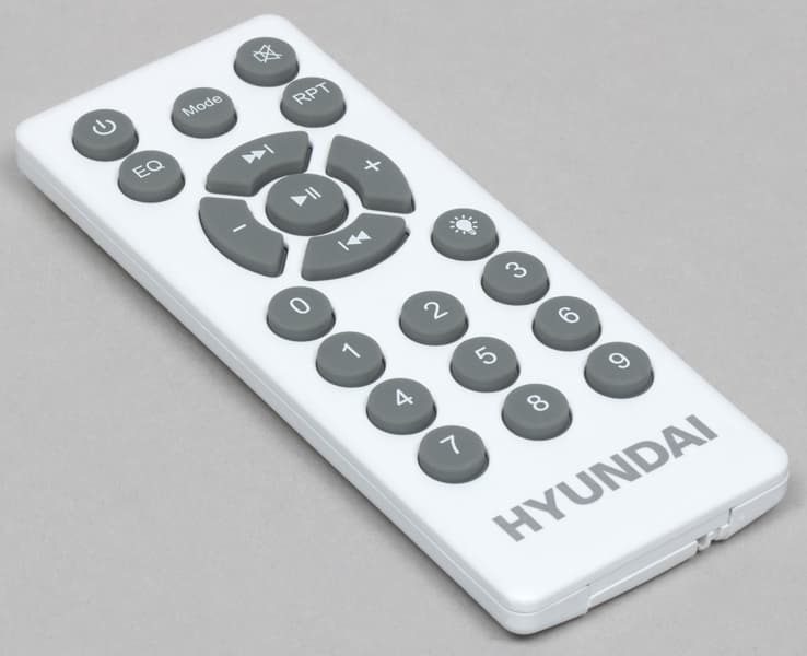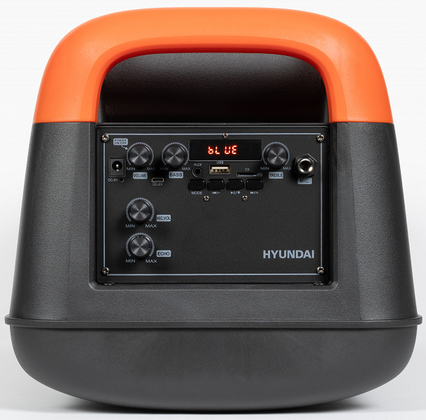В отличие от ряда других производителей, Hyundai указывает мощность как PMPO – 100 Вт, так и RMS – 40 Вт. Громкости колонки хватит для озвучивания помещения средних размеров или небольшой вечеринки на свежем воздухе. Особенности звучания колонки характерны для рассматриваемого форм-фактора: звук ориентирован на прослушивание танцевальных композиций и пение караоке. Регуляторы низких и высоких частот, размещенные на верхней панели, позволяют немного подстроить профиль звучания под вкусы пользователя. В режимах Bluetooth-подключения и USB-плеера также доступны звуковые профили, активируемые посредством клавиши на ПДУ – есть возможность выбрать один из них, после чего дополнительно подкорректировать звук с помощью регуляторов.