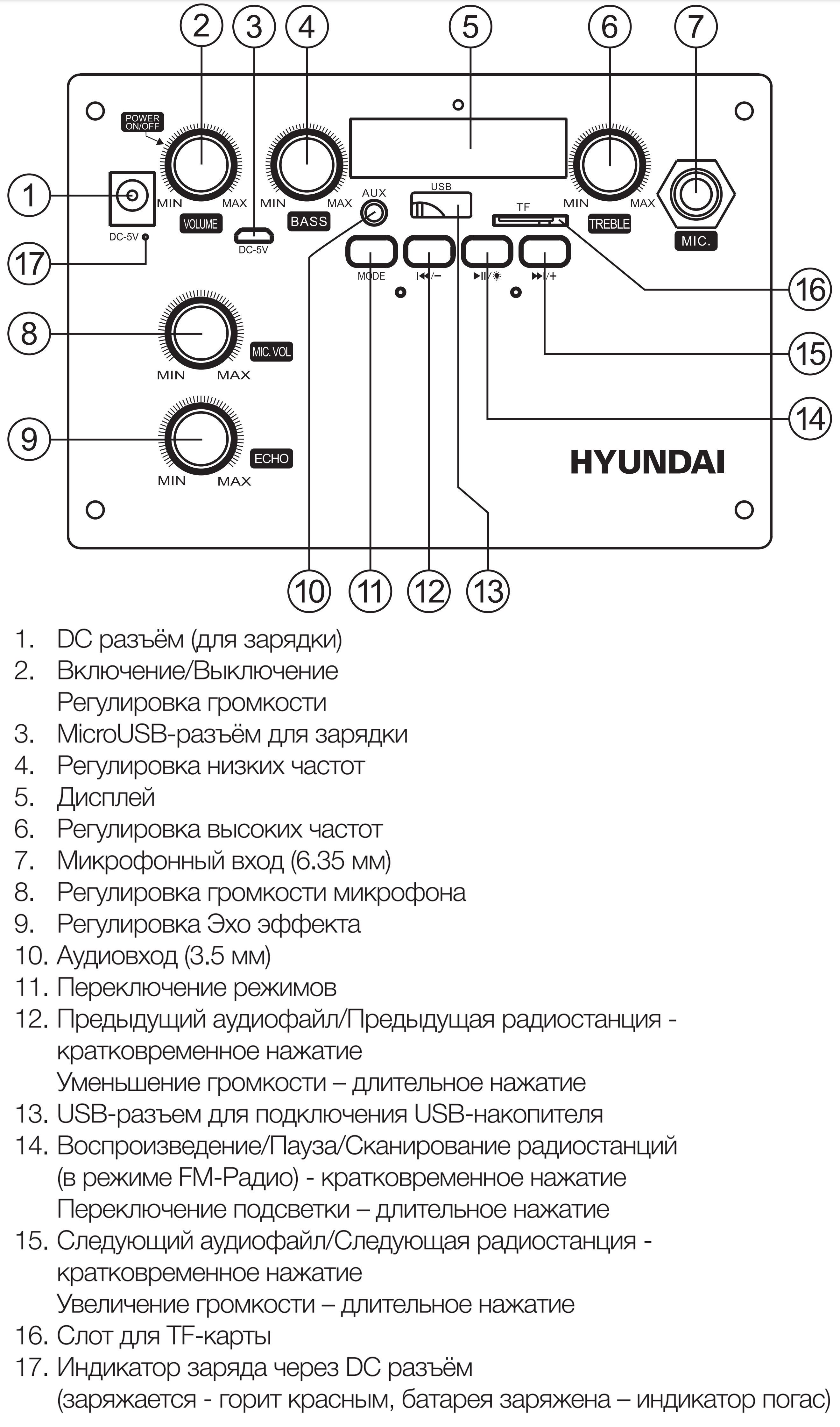 Для демонстрации всех органов управления и разъемов воспользуемся иллюстрацией из инструкции к устройству.