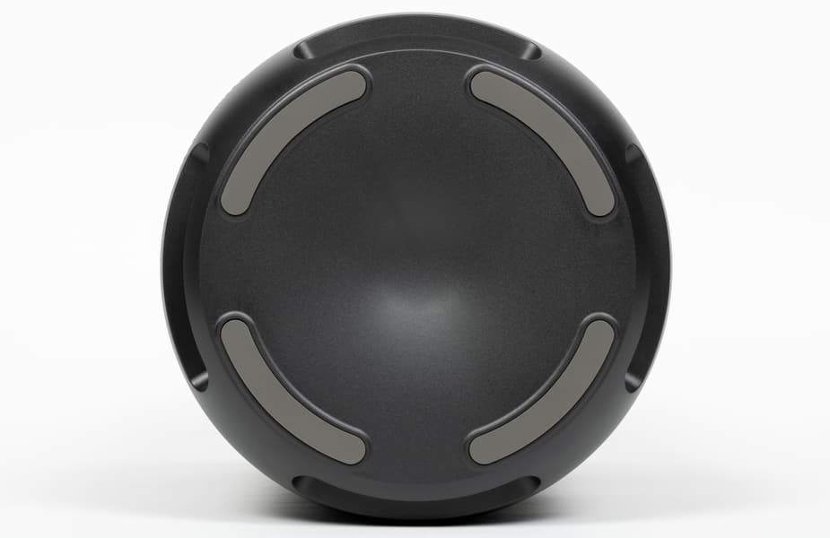 За закрытой тканью боковой поверхностью скрываются четыре динамика диаметром 2,5 дюйма, направленные в разные стороны. Именно они обеспечивают одну из главных особенностей модели — равномерное всенаправленное звучание. Панель управления расположена сверху и включает несколько клавиш, а также крупный поворотный регулятор громкости.
