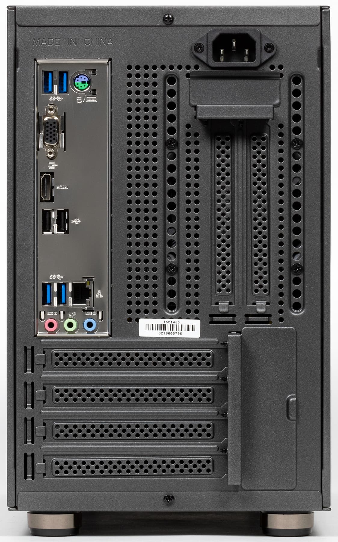 А для установки такой карты, причём даже двухслотовой, возможность имеется – благодаря наличию не только слота PCIe 3.0 x16 на системной плате, но и предусмотренной в корпусе системы крепления плат расширения с соответствующими прорезями на задней стенке.