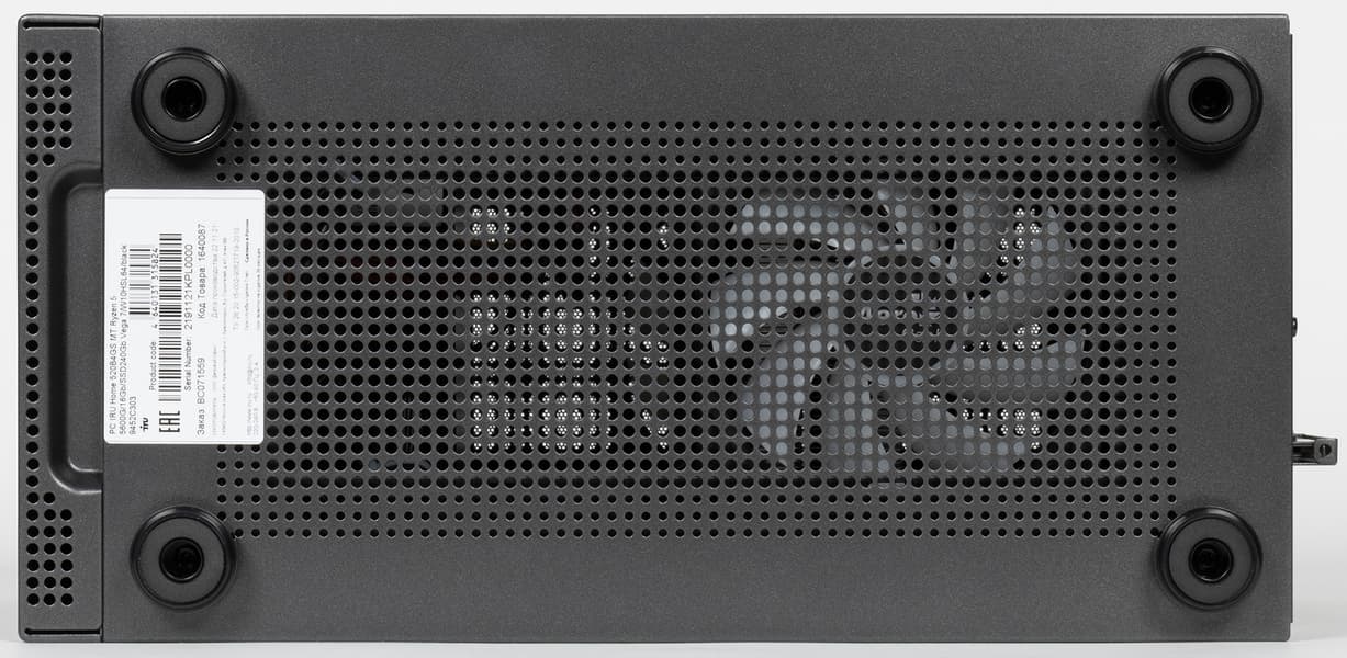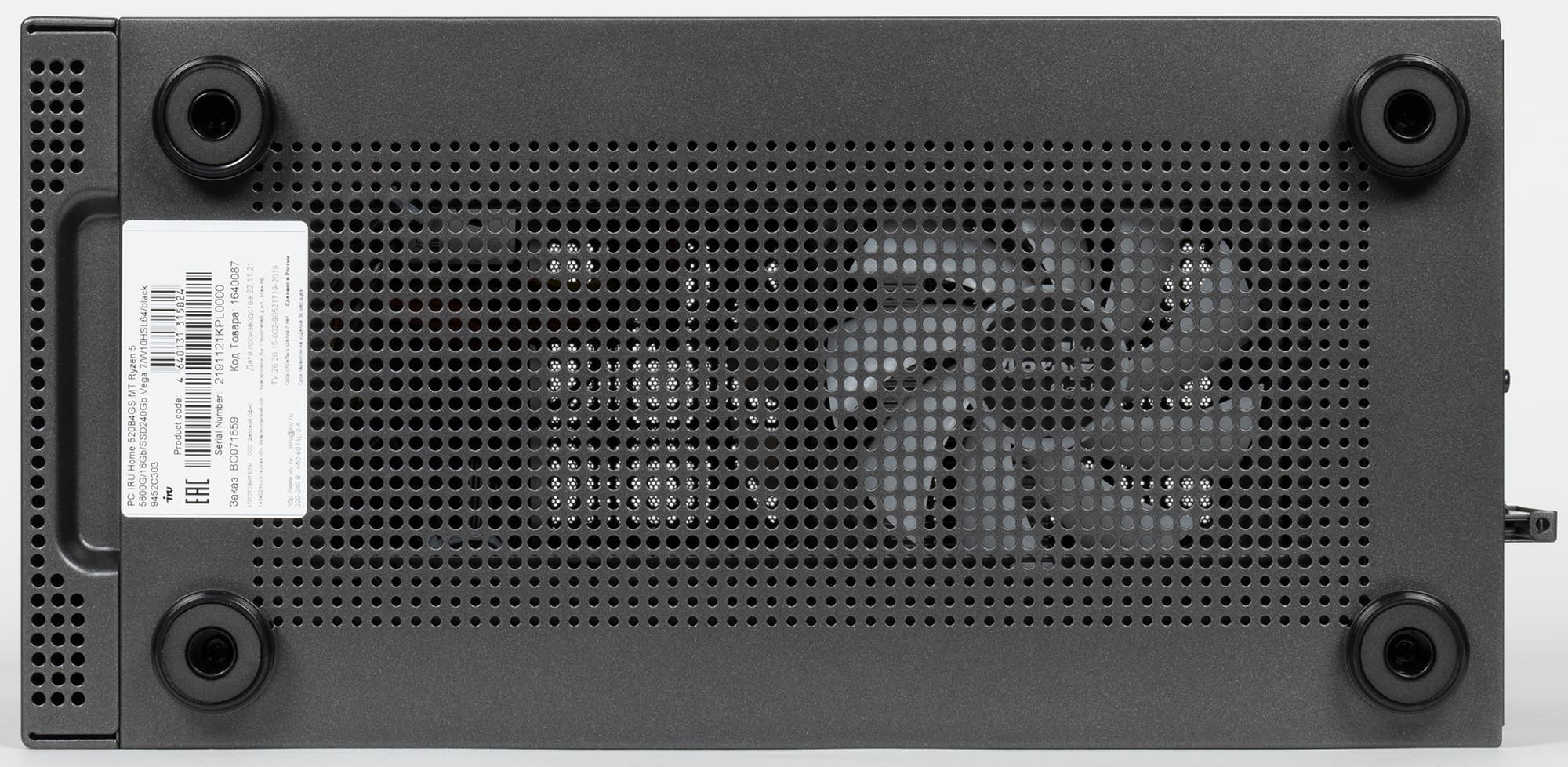 Корпус, в котором собран компьютер, не имеет других опознавательных знаков, кроме логотипа iRU на лицевой панели и имеющейся на днище наклейки с конфигурацией, серийным номером и другими данными.