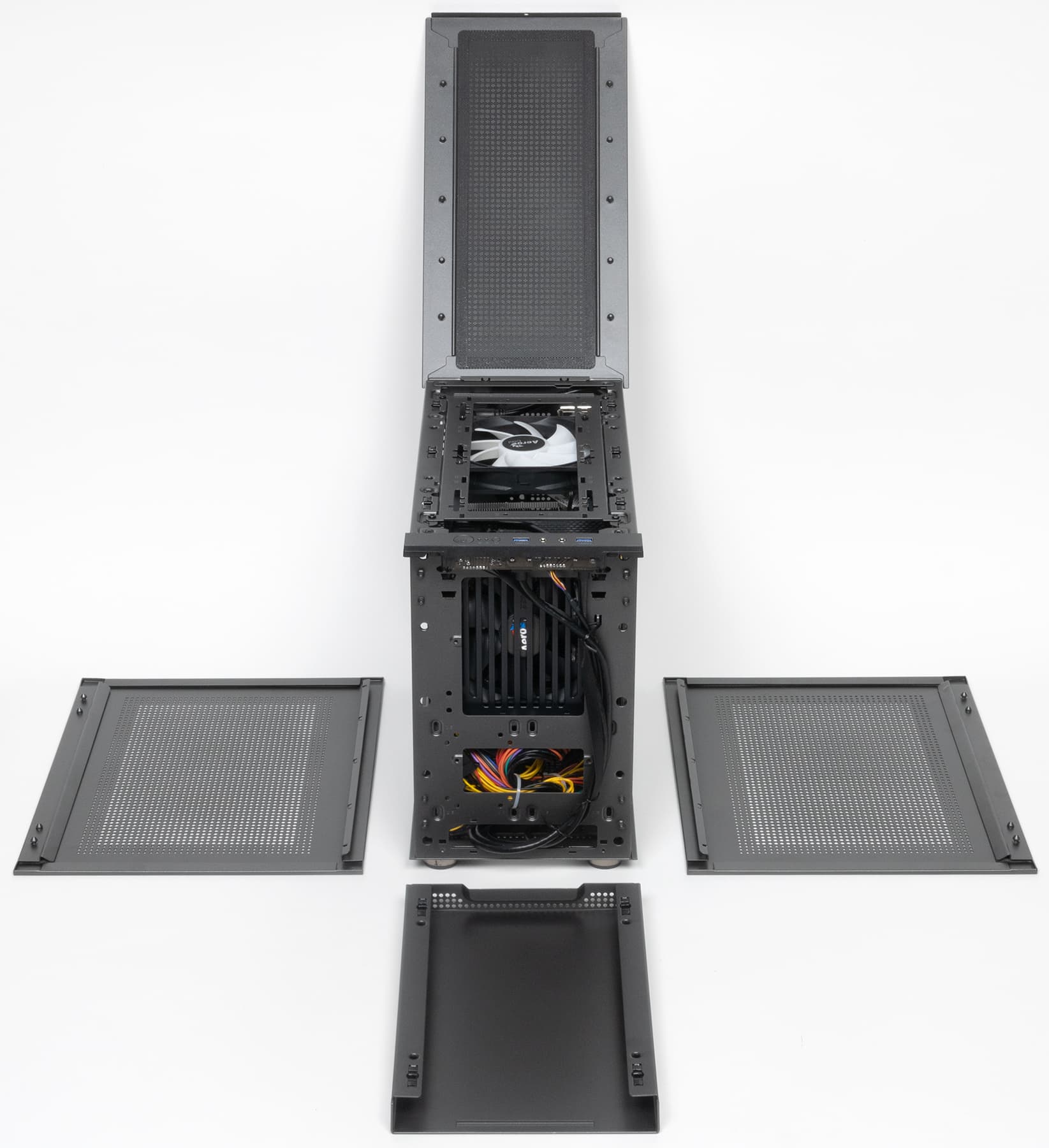 Возможно, при желании есть смысл отключить или вовсе удалить нижний вентилятор, это заставит воздух выходить через отверстия в днище и к тому же компьютер будет работать чуточку тише – всё-таки минус один источник шума.