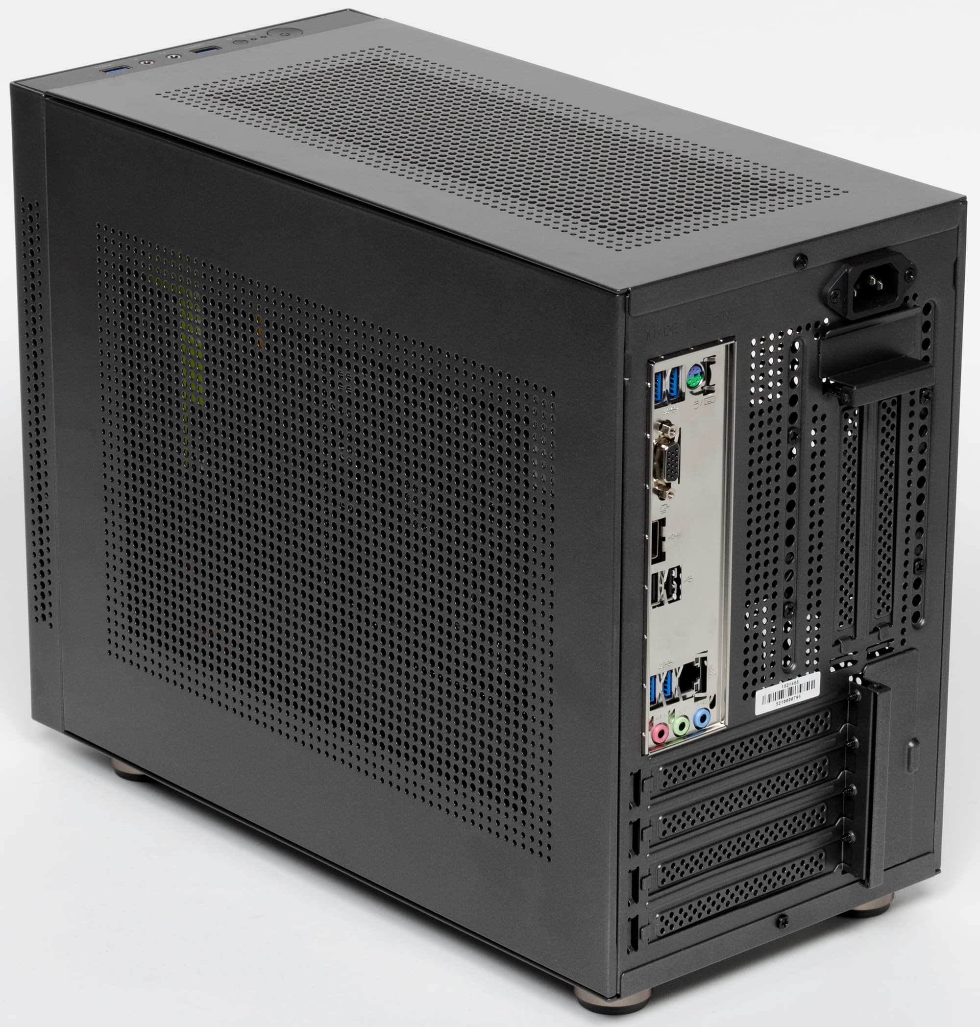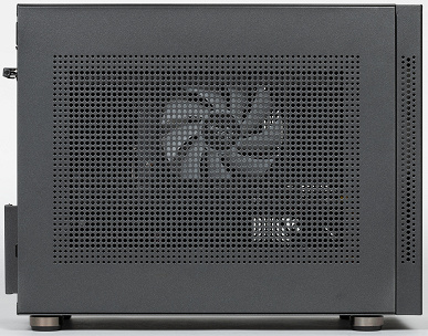 Размеры вполне компактные для minitower – 30×18,5×39 сантиметров (и это включая выступающие элементы), а дизайн совершенно нехарактерный для современных корпусов подобного типа: нет ни одного окна с прозрачной вставкой, большого (во всю стенку) или маленького.