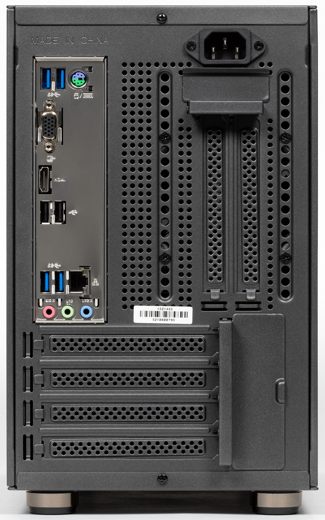 - сзади: четыре порта USB 3.2 Gen 1 и два USB 2.0 (все Type-A, Type-C нет); на плате есть разъёмы для дополнительных портов: двух USB 3.2 Gen 1 и четырёх USB 2.0,