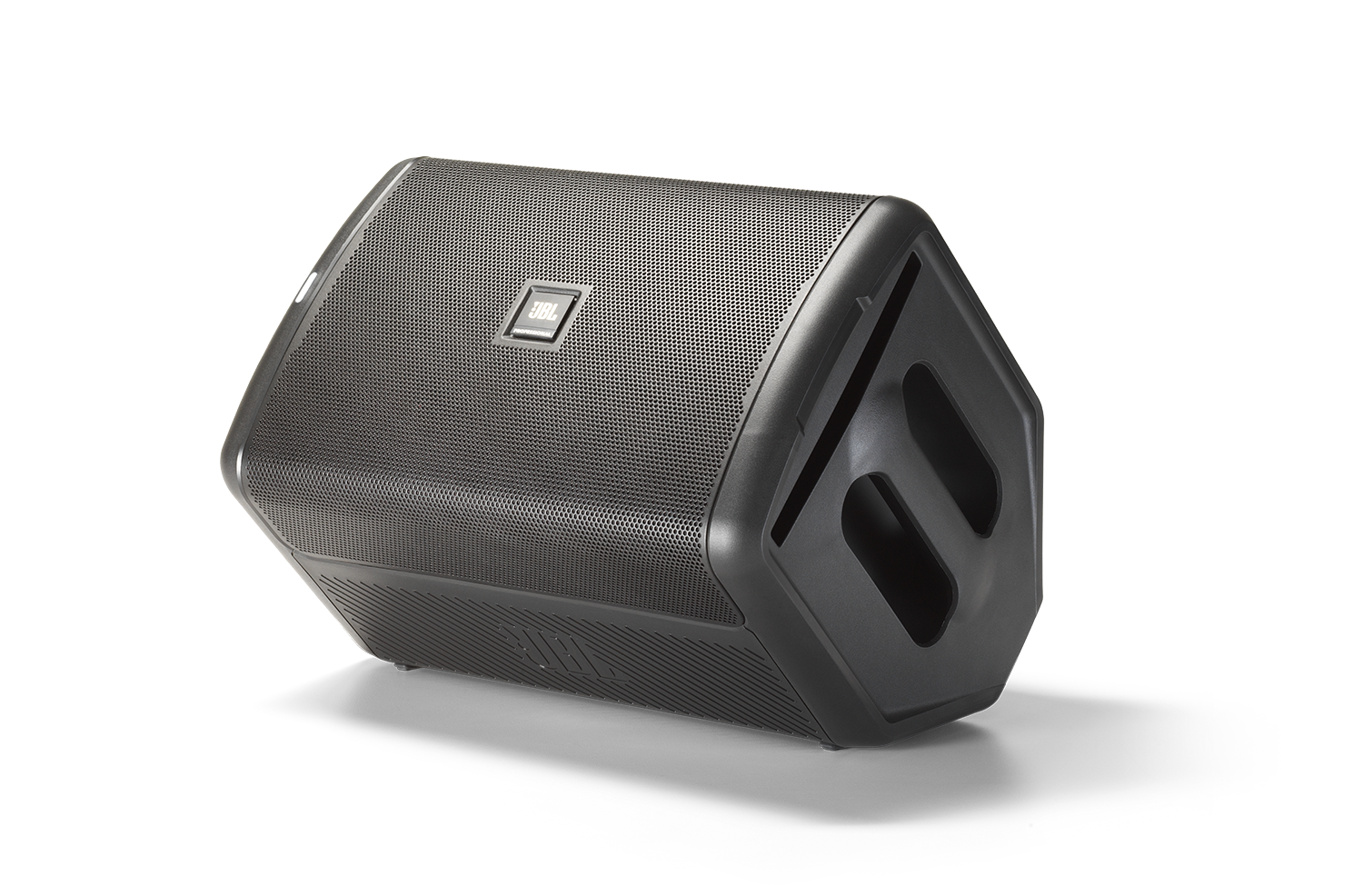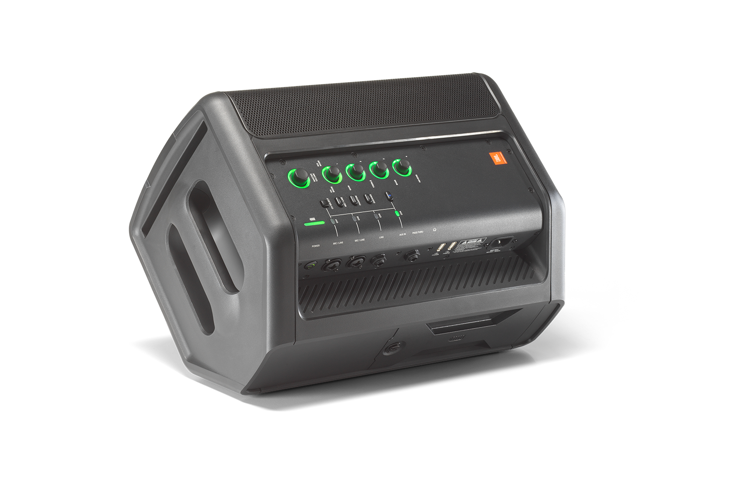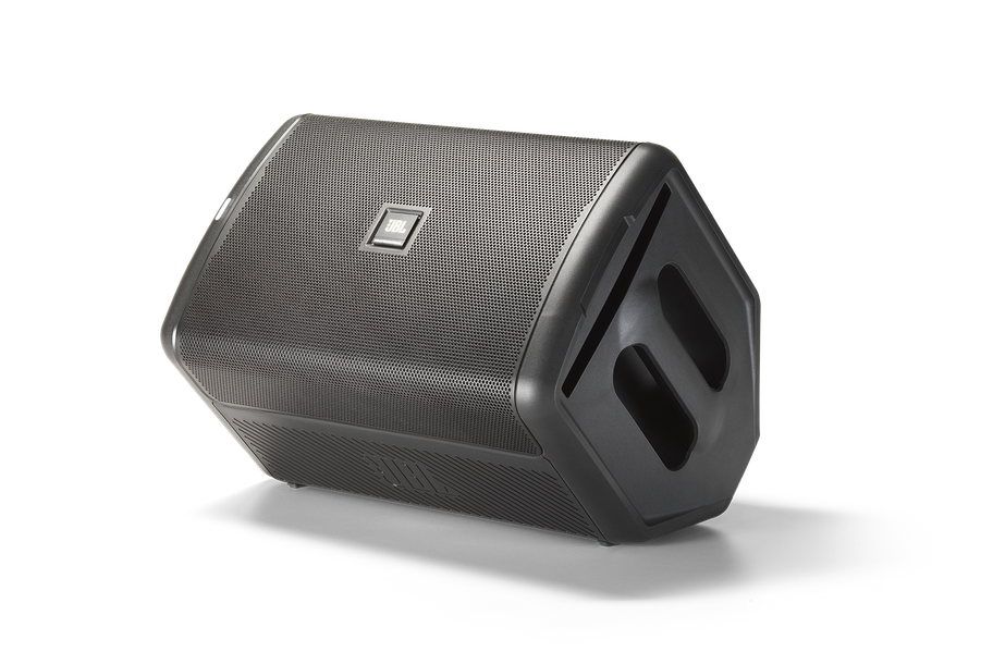 Модель выполнена в классическом для активной акустической системы литом корпусе из пластика. Сверху размещена большая ручка для переноски, а также ниша для установки планшета — на случай если понадобится тонкая настройка звука через программный интерфейс JBL Compact Connect.