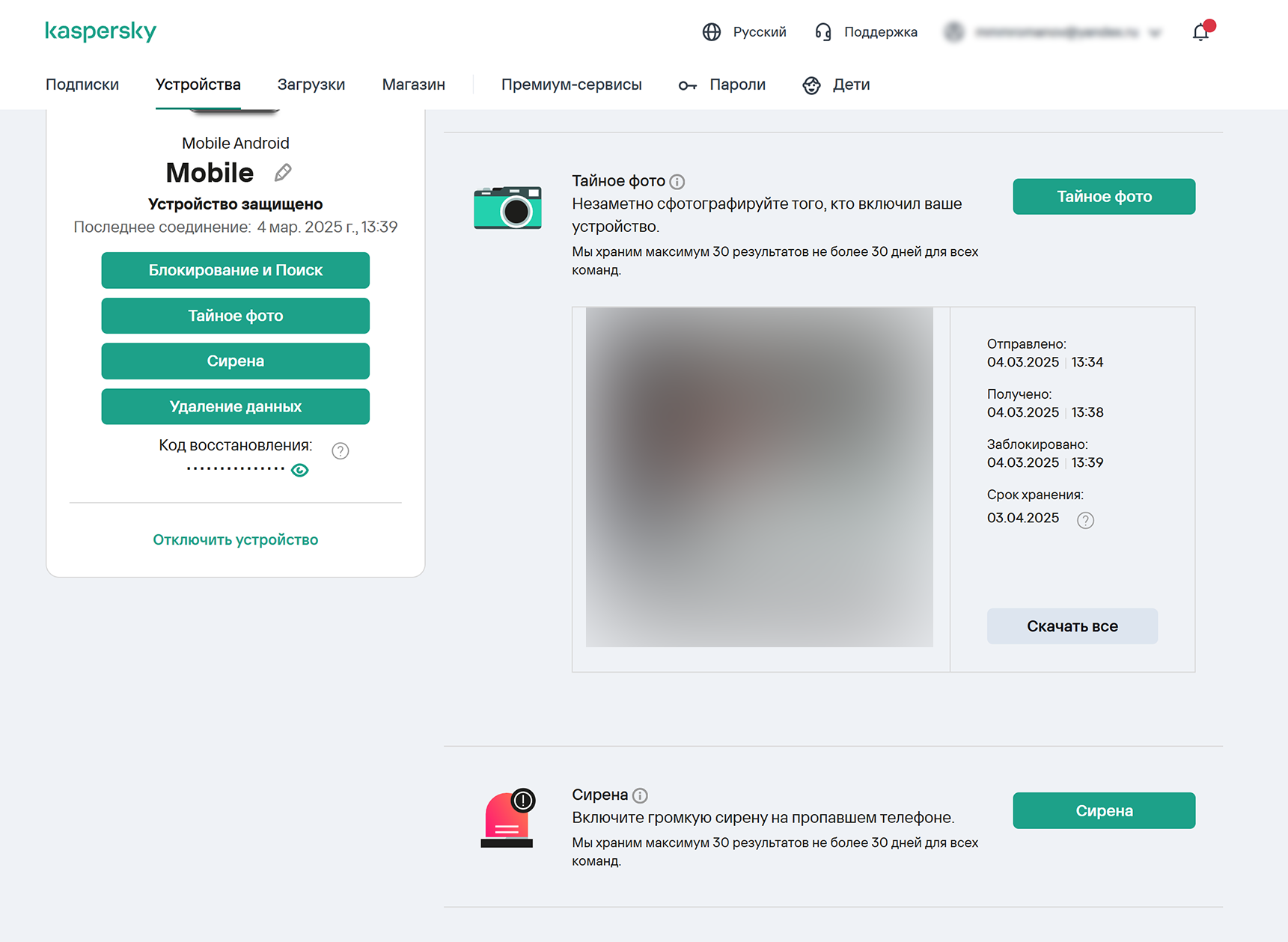 Но самое интересное – это опции, активируемые в случае утери или кражи телефона. Его можно удаленно заблокировать, включить сирену и даже сделать тайное фото человека, который включит гаджет.