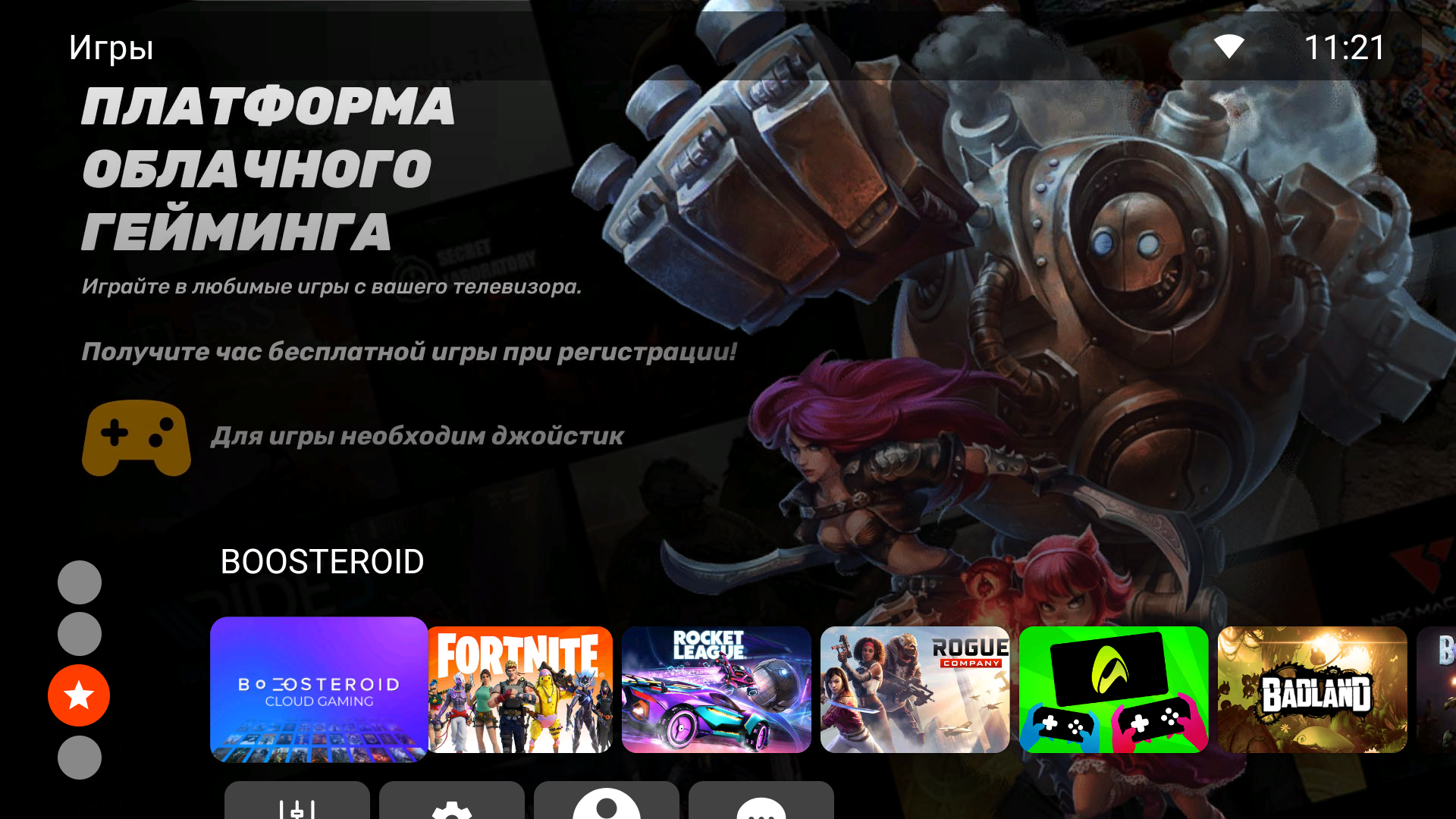 Игры: раздел разработан в сотрудничестве с сервисом Boosteroid. Его технология позволяет запускать требовательные современные компьютерные игры просто на телевизоре: игра работает на собственных сервисах партнера, а игровой процесс передается через интернет на экран пользователя, который контролирует игру со своего устройства, например, с геймпада.