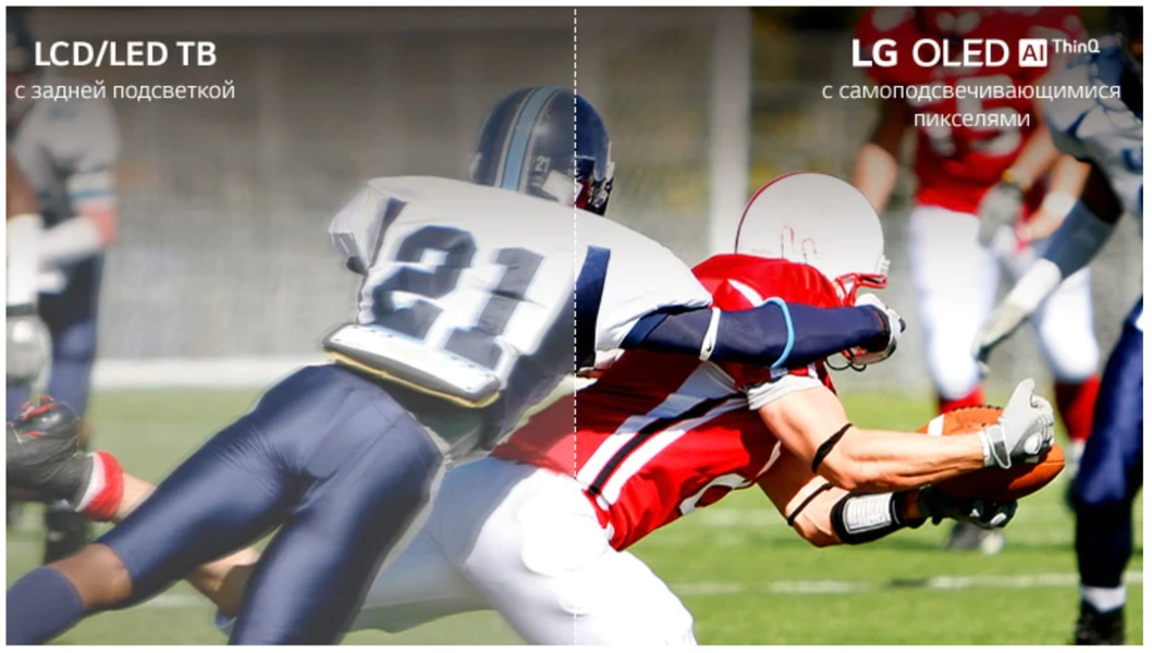 Технология OLED Motion позволяет добиться этого, добавляя к существующим кадрам промежуточные. Все быстрые движения игроков и спортивных снарядов можно разглядеть в мельчайших деталях, насладившись незабываемыми эмоциями от просмотра.