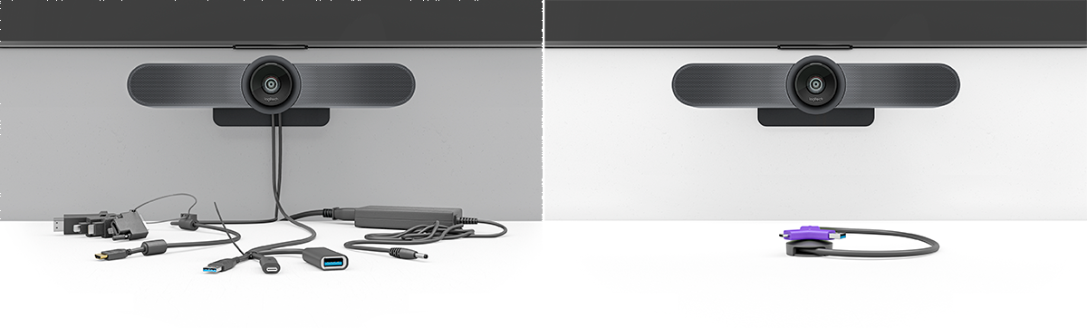 На одном конце Swytch находится компактный разветвленный коннектор — USB-C или USB-A, на выбор. С помощью только него одного вы можете подключить ноутбук к камере, микрофону, акустике и экрану в конференц-зале — другие провода или адаптеры искать не придется, так как они уже подключены к Swytch.
