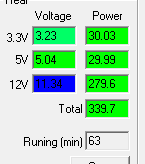 Нагрузочная способность канала +12VDC составила 100 Вт при отклонении действующих значений напряжения от номинала в пределах 3%, и около 200 Вт при отклонении действующих значений напряжения от номинала в пределах 5%.