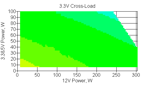 Отклонения по каналу +3,3VDC не превышают 3% во всем исследованном диапазоне мощности.
