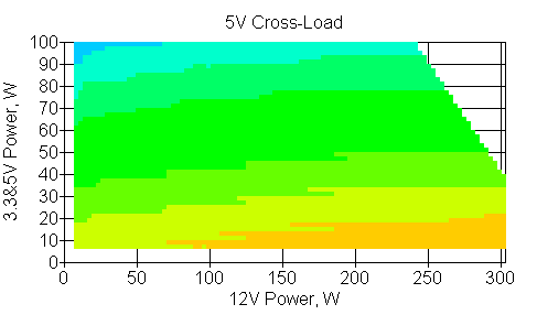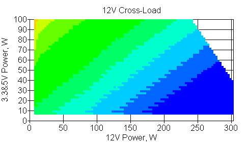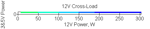 Отклонения по каналу +12VDC превышают 5% при высоких нагрузках. При типичном распределении мощности по каналам, которые характерны для современного системного блока, отклонения не превышают 5% только при нагрузке в пределах около 200 Вт по данному каналу.