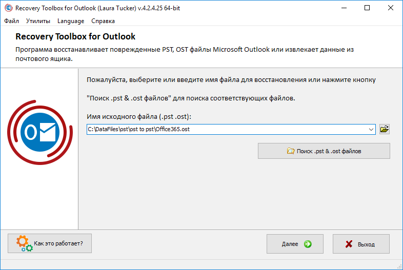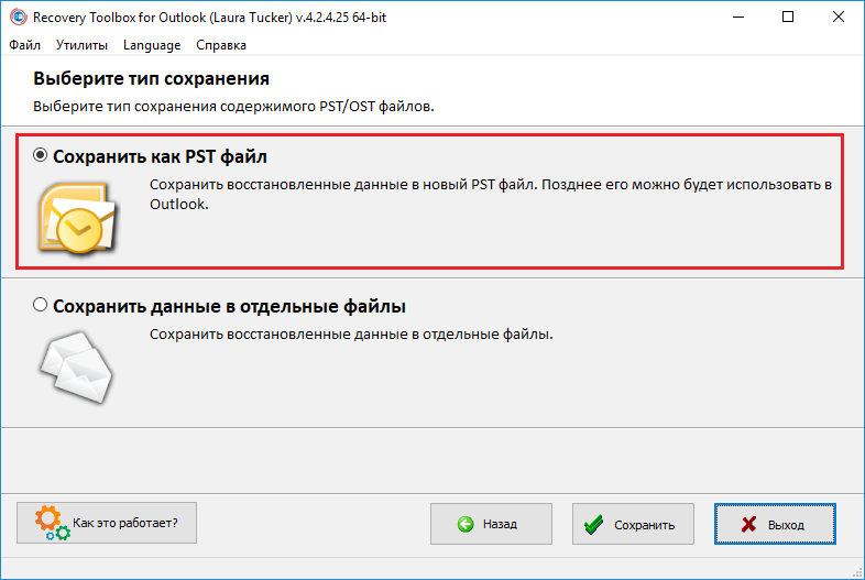 Чтобы проиллюстрировать, как работает Recovery Toolbox for Outlook, мы рассмотрим две основные функции этой программы: