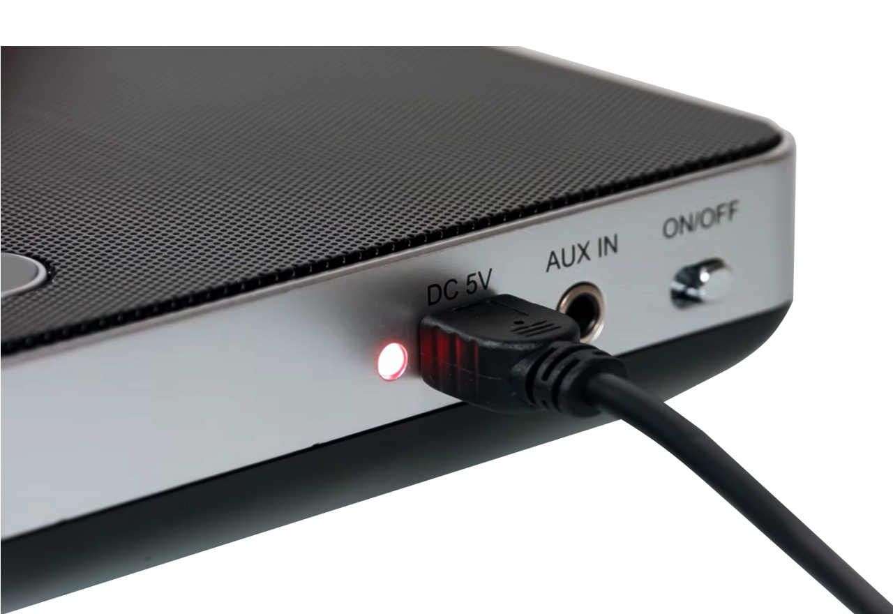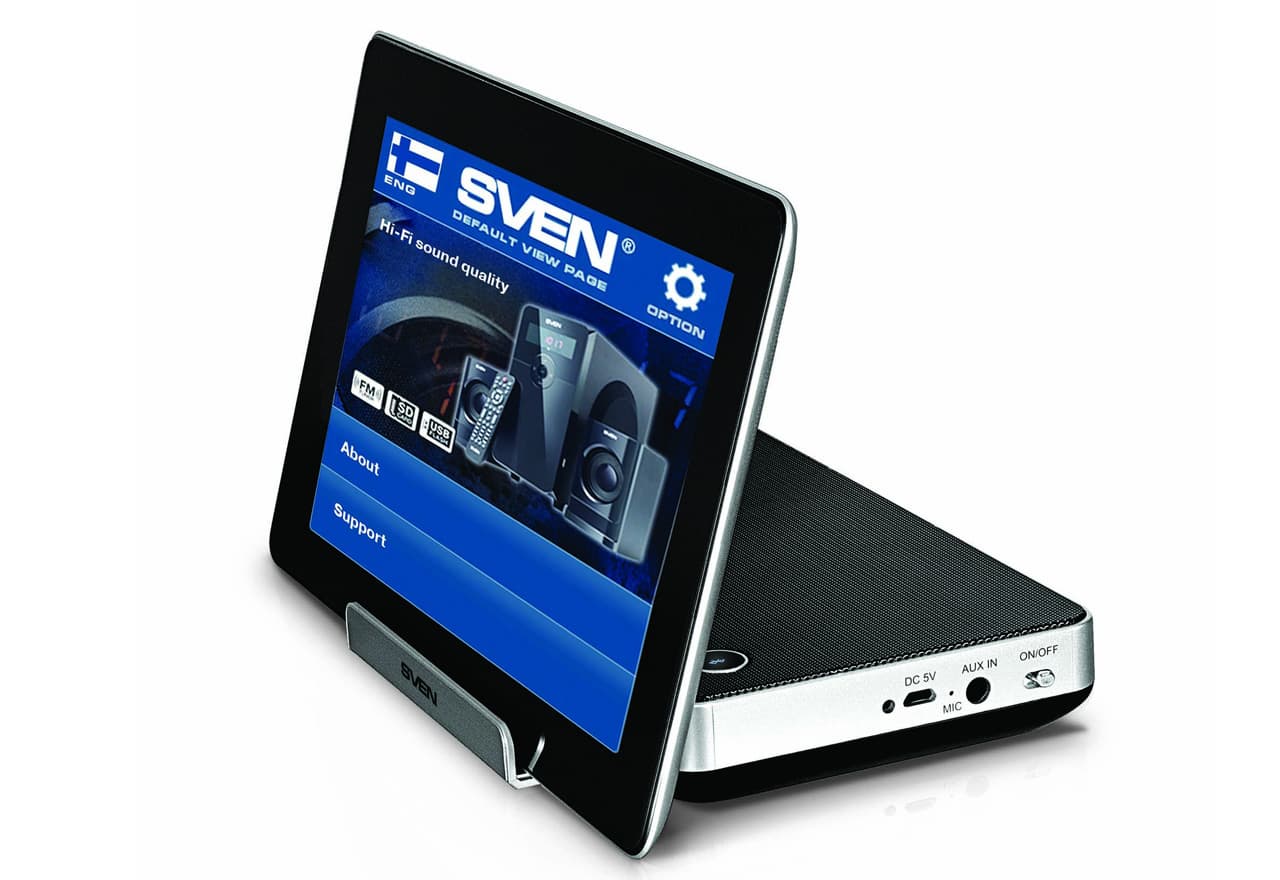 Установив свой планшет или смартфон на удобную прорезиненную подставку колонки, вы можете смотреть видео с хорошим звуком, слушать музыку и даже пользоваться конференц- связью, так как в колонку встроен микрофон.