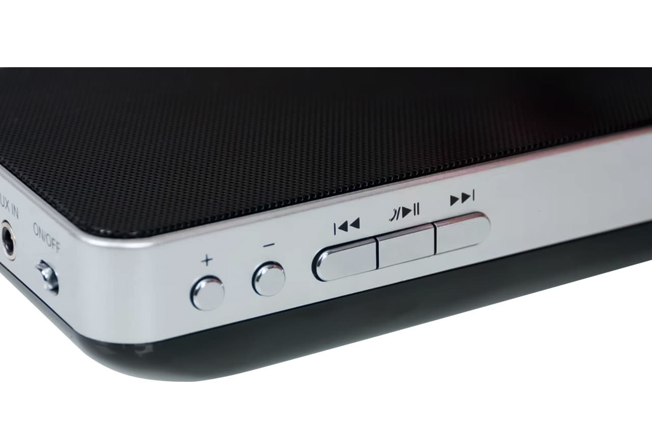 Два динами ка по 3 Вт и пассивные излучатели обеспечивают отличное качество звучания при компактных размерах акустики – толщина корпуса всего 35 мм, а вес около 400 г.