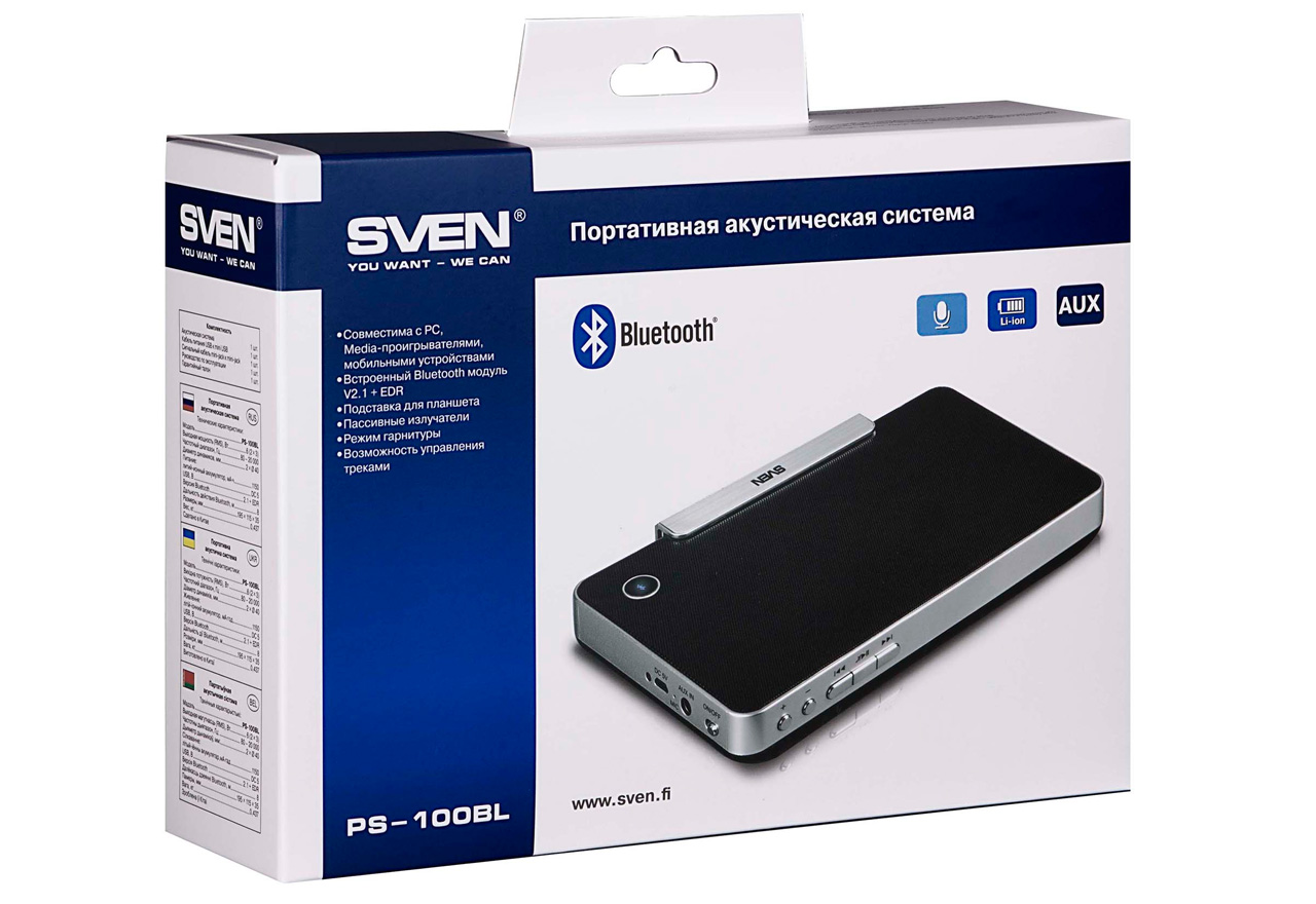 Компания SVEN представляет портативную акустическую систему SVEN PS-100BL. Она прекрасно подходит для работы со смартфонами, планшетами и другими устройствами с модулем Bluetooth.