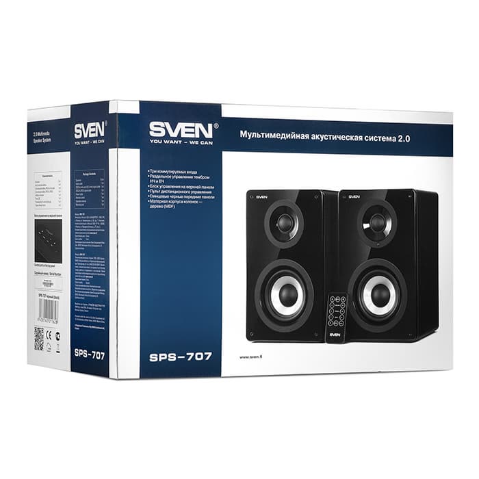 В акустической системе 2.0 SVEN SPS-707 собраны практически все самые актуальные решения, превращающие акустическую систему в последний писк моды. 50 ватт мощности, шелковый ВЧ-твиттер, три коммутируемых входа – все эти компоненты и характеристики способны порадовать тех, кто разбирается в технике на профессиональном уровне.