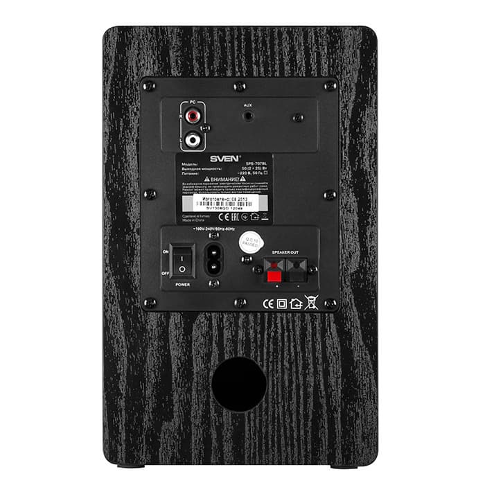 Кроме того, акустику SVEN SPS-707BL можно подключить к источнику звука и при помощи проводов, чтобы озвучивать фильмы и компьютерные игры - на задней стенке колонок имеются коммутируемые входы.