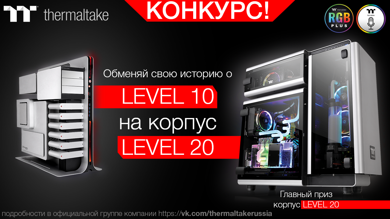 Итоги конкурса будут подведены 18-го мая на презентации корпуса Thermaltake Level 20, а мы обязательно поделимся ими в новостях группы!