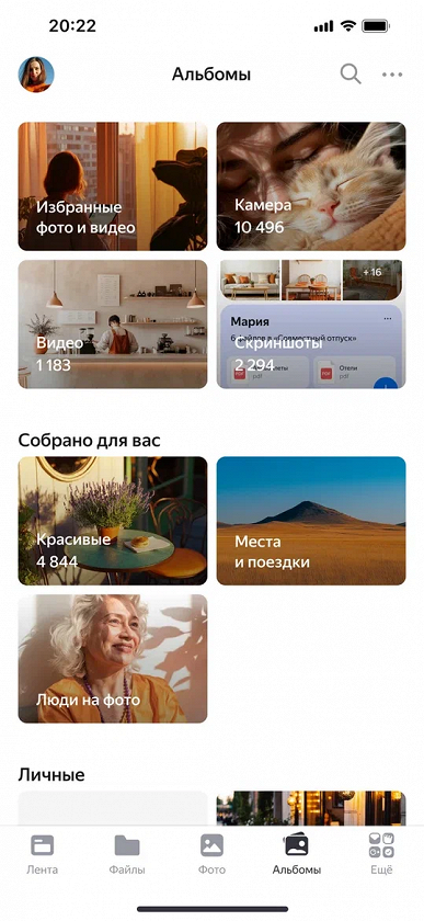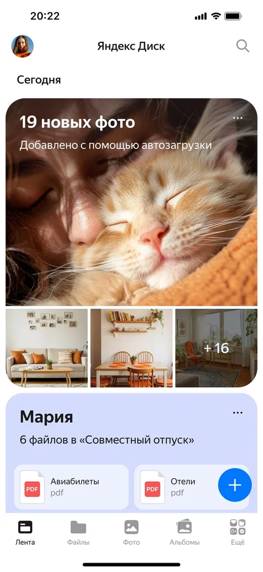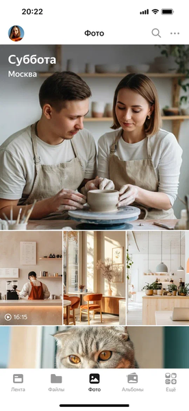 Отдельного внимания заслуживают «Анимированные Воспоминания» — слайд-шоу из фотографий пользователя с плавной анимацией и музыкой, подобранной по настроению. Каждое Воспоминание содержит от 5 до 30 кадров, которые можно пролистать вперед, назад или поставить на паузу. Подборка формируется по общим параметрам: объект в кадре, время или место съемки. Это может быть как простая серия снимков с домашними питомцами, так и целая история вроде «Майского путешествия в Сочи» или «Цветов 2023 года». Все Воспоминания появляются в общей ленте «Диска», откуда к ним можно вернуться в любой момент.